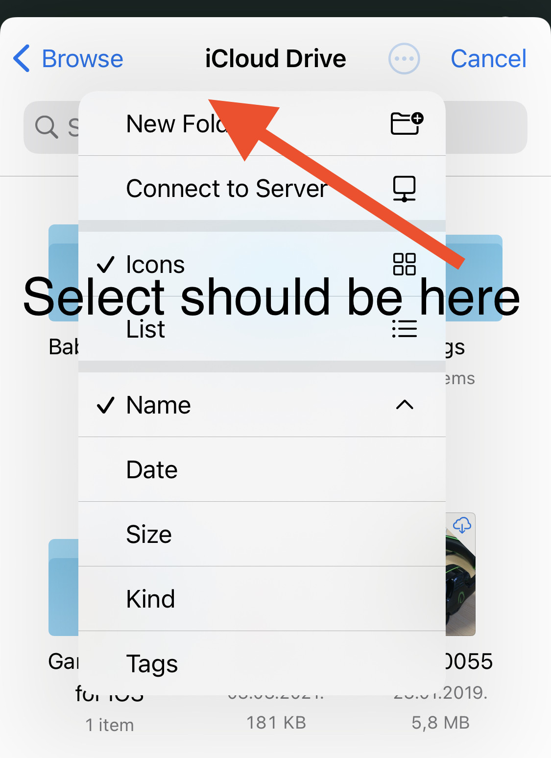 有谁知道为什么在Select中没有3 dots选项,就像在Files app中那样点击UIDocumentPickerViewController?即使multipleSelection设置为true。