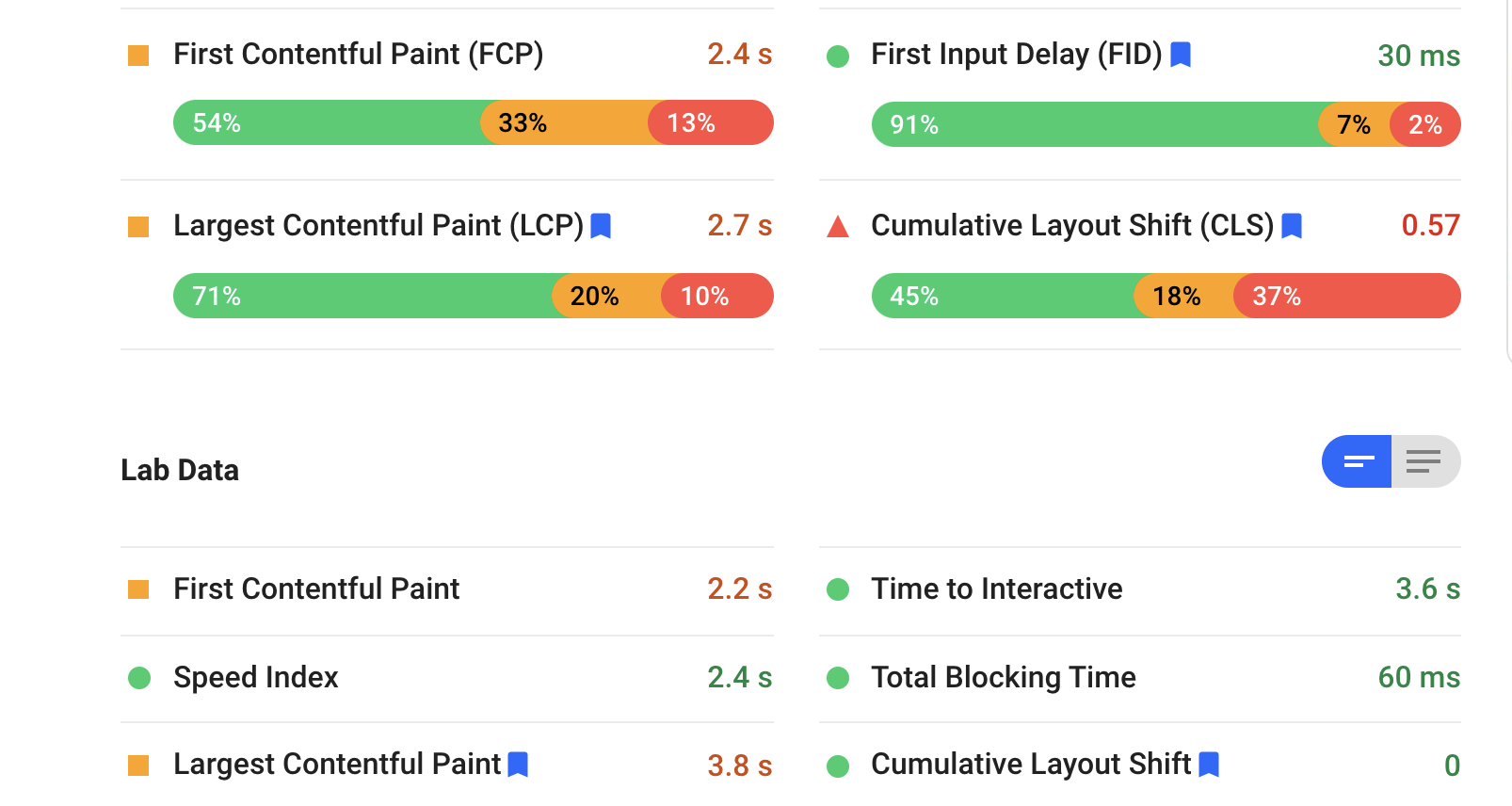 使用灯塔这样的实验室工具来调试CLS可能是一个困难的度量,因为它们只在默认情况下评估初始视图端口。换句话说,他们的行为不像一个真正的用户。当一个真正的用户登陆到一个页面上时,他们会滚动并点击一些东西。