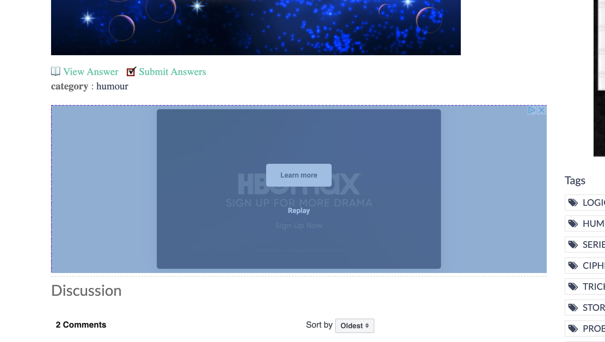 似乎正在发生的事情是,在“类别:幽默”下面的广告被注入到页面中,下面的所有内容都向下移动。