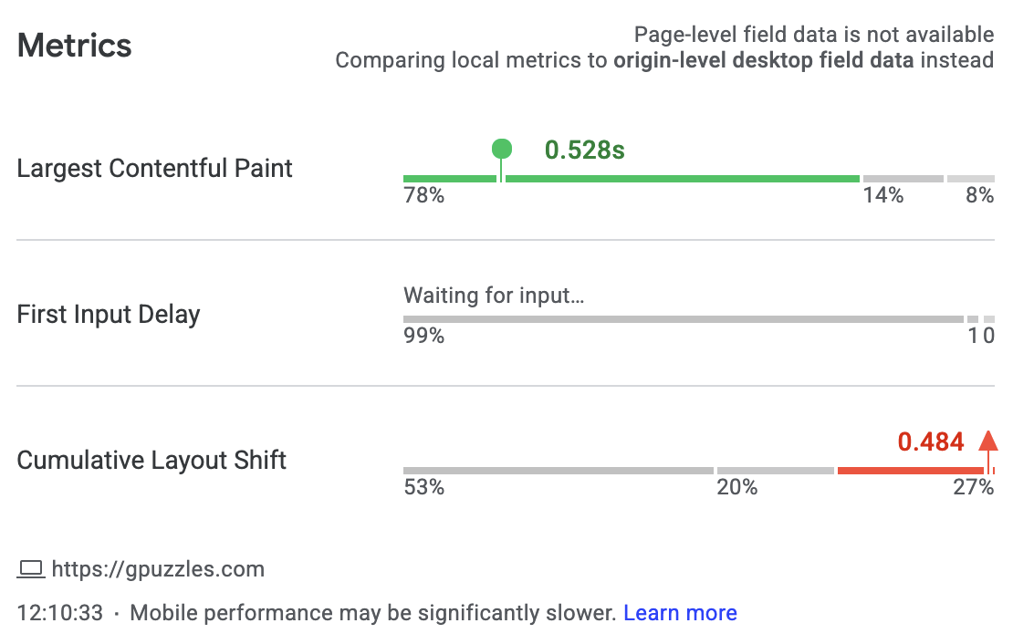 因此,在尝试调试Core问题时,特别是对于CLS,我建议您自己使用启用Chrome的Web Vitals扩展的诊断工具访问该页面。