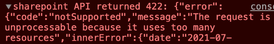 我的API试图在一个巨大的Microsoft中查询站点的子站点,但是Graph返回一个422“请求是不可处理的,因为它使用了太多的资源”错误。
