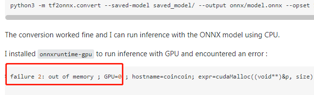 我安装了onnxruntime-gpu以使用GPU运行推理,并遇到了一个错误: