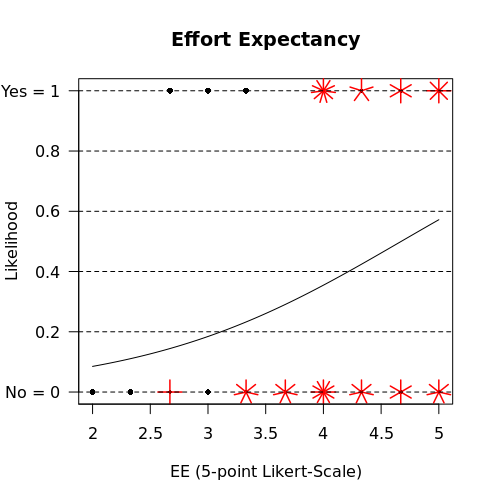 sunflowerplot(EE, cb, main = "Effort Expectancy",