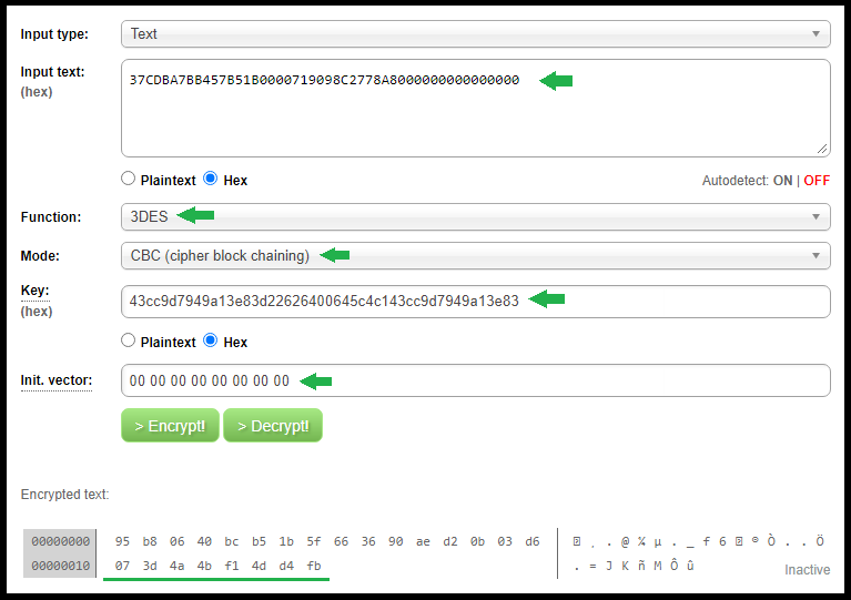 Version: 1 (0x01) ID: 2 (0x02) type: DES3 length: 16