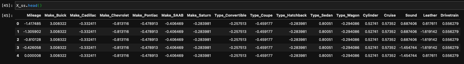 然后,我对我的预测器列使用了标准标量: