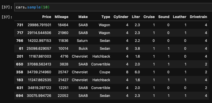 如果你已经在所有的特征上拟合了OLS模型,那么用有限的特征做预测就没有多大意义了。您也许可以选择系数(const + 1*Make_Cadillac +1*皮革+6*柱面)进行自定义预测,或者您可以根据您想要用于预测的特性重新拟合模型,也许可以用一个函数来简化它。