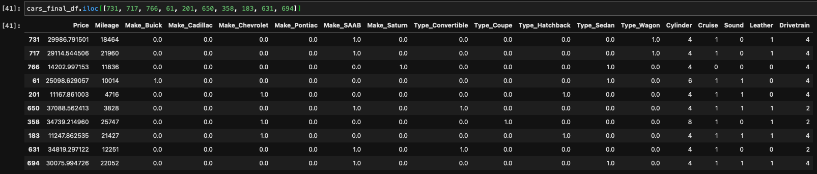 我有一个热编码的'Make‘和'Type',并将这些列添加回: