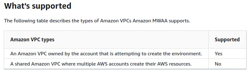 AWS文件主要描述了当您想为MWAA创建一个新的VPC时应该做什么。