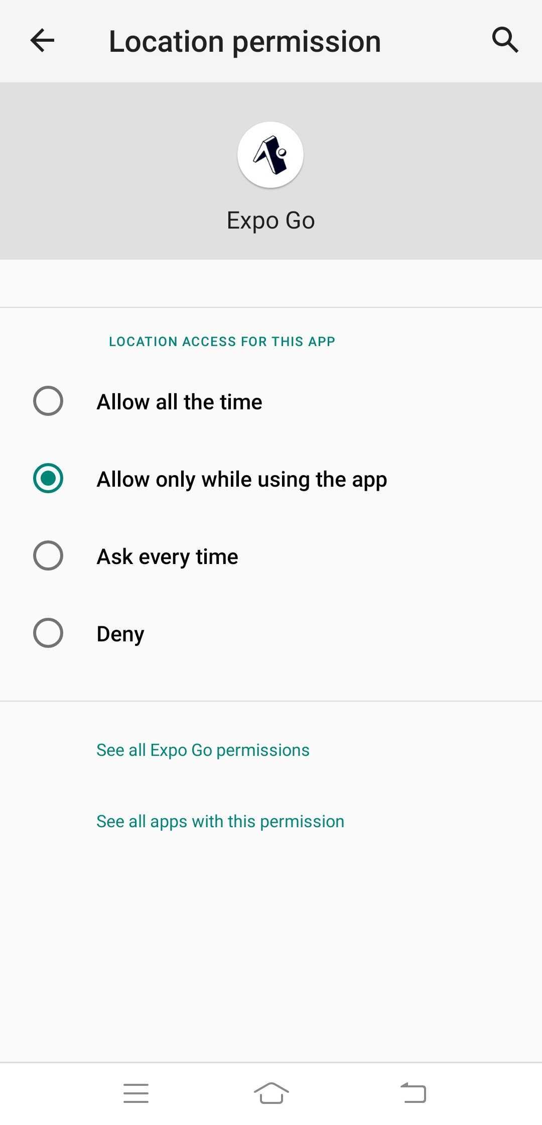 Expo Go应用程序的所有权限。Expo go应用程序https://stackoverflow.com/questions/68203138