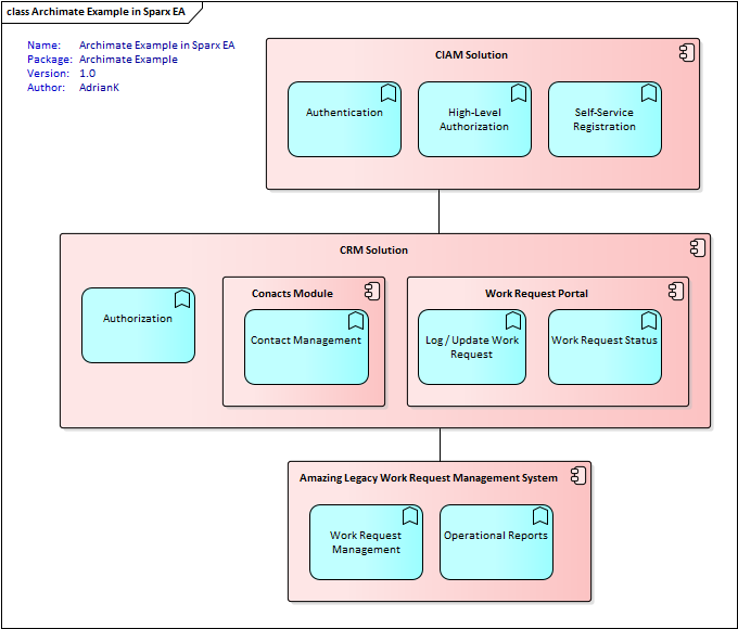 下面是一个简单的示例,用于将Archimate元素放入其中以描述系统/组件的职责: