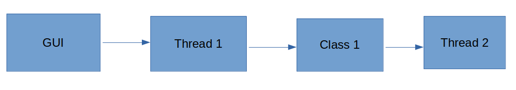 GUI是用wxPython制作的,在主线程中。启动应用程序后,GUI线程创建Thread1,它创建静态类Class1,创建Thread2。