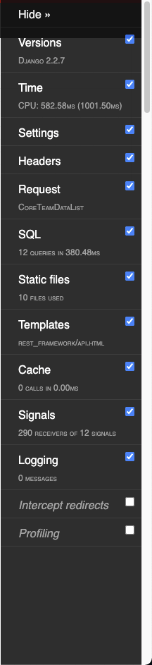 Django调试工具栏如下所示