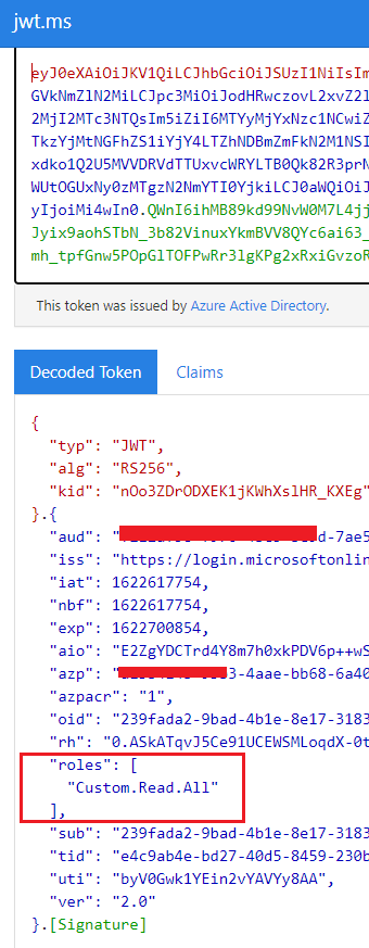 您目前应该执行服务器与服务器之间的交互,即没有用户参与.因此,您的服务器应用程序需要创建一个appRole,然后将应用程序角色作为应用程序权限授予客户端应用程序。