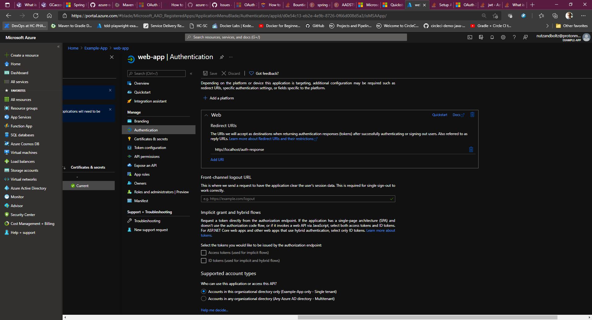 我正在尝试用Spring应用程序访问一个web来设置客户端凭证流(两者都是我拥有的)。我试图遵循Azure文档Microsoft平台和OAuth 2.0客户端凭据流和Quickstart:配置客户端应用程序以访问web API,但是我遇到了一些问题,因为文档还不清楚。在我的设置中,Azure迫使用户登录,然后从那里冒出其他错误消息。然而,正如我们所知道的,客户机凭据应该是机器对机器的授权,所以我不知道为什么会发生这种登录流。