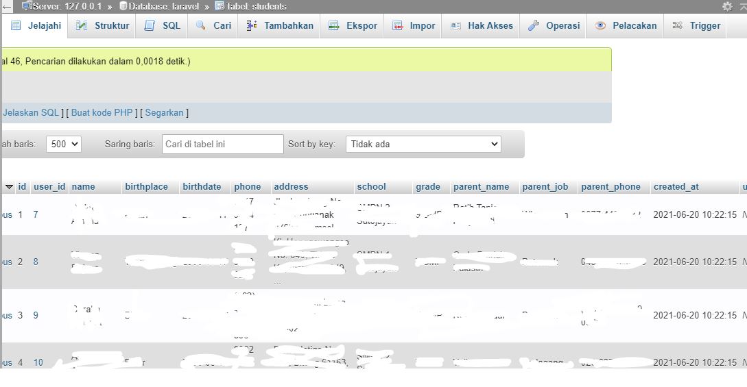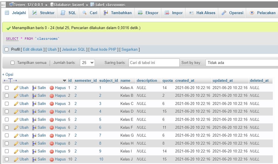我想用拉拉显示数据。这是教室的桌子: