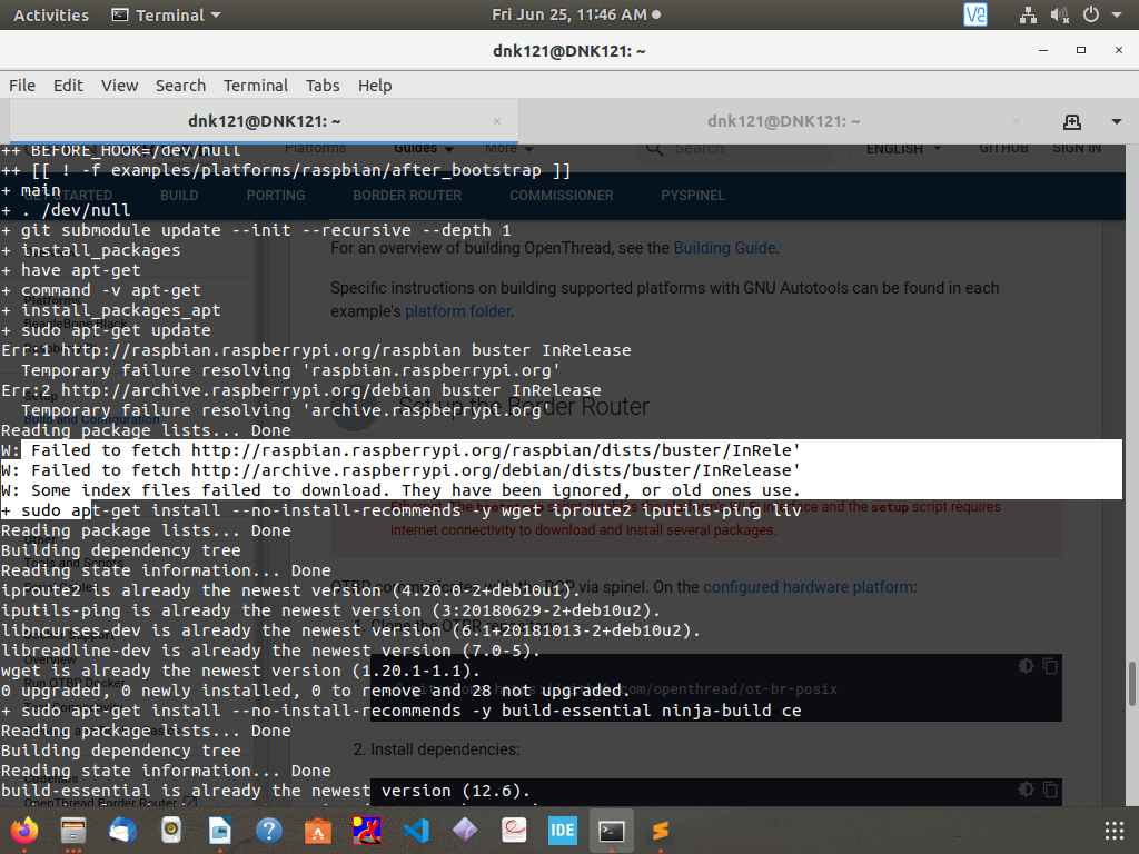 现在,由于我希望我的最终产品尽可能具有成本效益,我想考虑使用RPi零W设置我的开放线程边界路由器。因此,我遵循了OTBR中提到的在RPi Zero W上安装它的相同步骤,在步骤3中我遇到了这一行,即“在继续之前,确保配置的硬件平台使用以太网连接到internet。引导脚本禁用平台的WiFi接口,安装脚本需要互联网连接才能下载和安装多个软件包。”