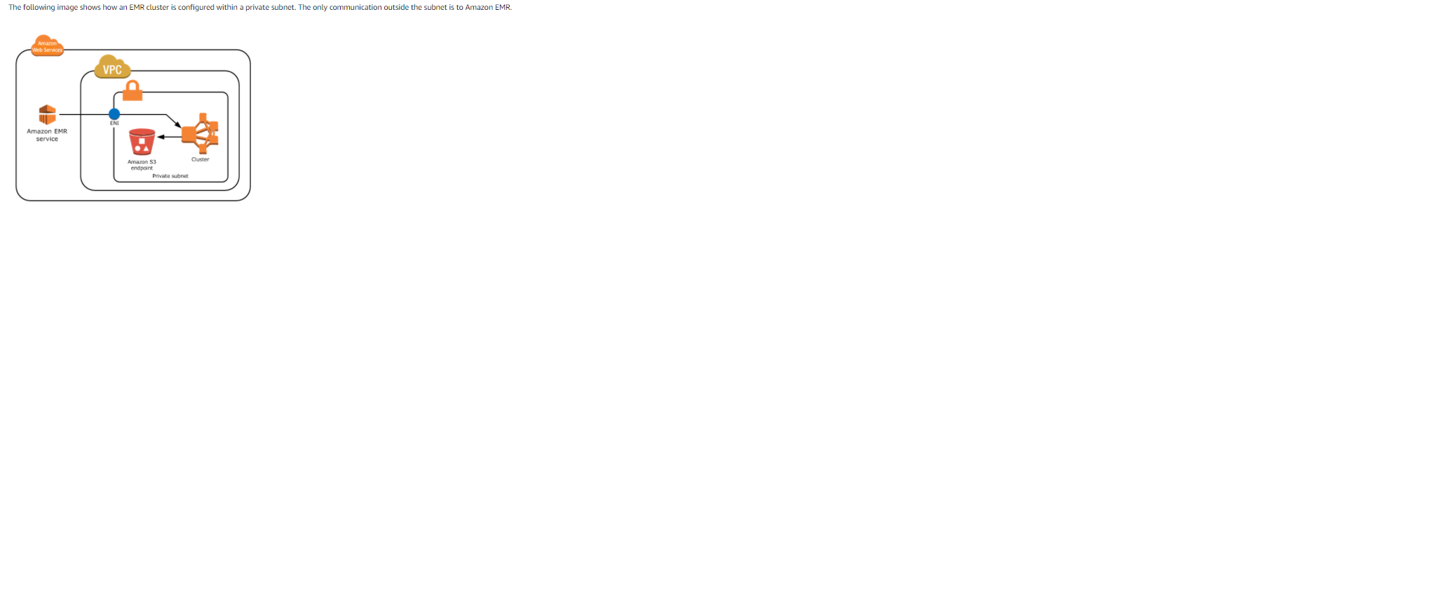下面的图像来自AWS本身,显示了EMR集群是如何在私有子网中配置的。很好。
