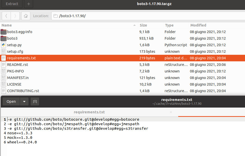 我已经找到了boto3的配方,如下所示,但是boto3-xx.tar.gz通过requirements.txt安装botocore。约克托似乎没有运行它。