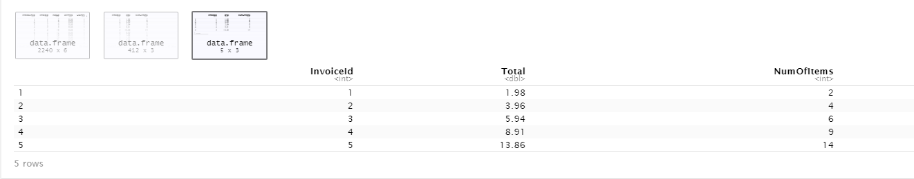 sqldf(c(“更新df集DiscPric = NumOfItems < 5"))
