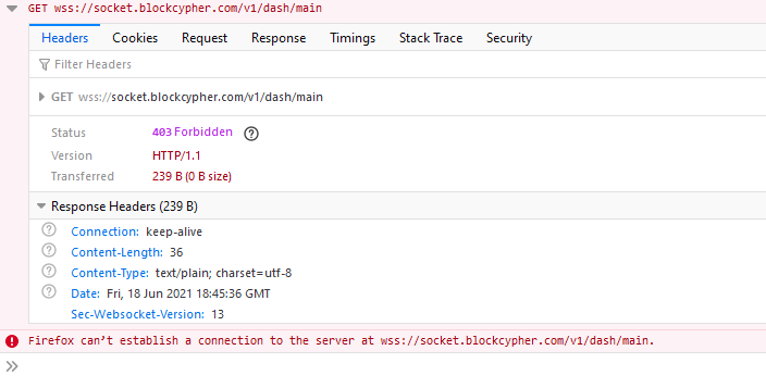 }浏览器控制台显示此错误:Firefox can’t establish a connection to the server at wss://socket.blockcypher.com/v1/dash/main.