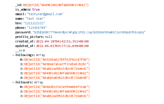 我一直在构建一个社交媒体应用程序,我必须编写一个返回用户的查询。用户的架构如下所示。