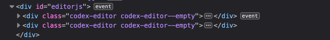 我正在尝试使用EditorJS的编辑器。一切正常,除了当我第一次加载页面时,它在开始时初始化两个编辑器,并且每次重新加载页面时都会追加新的编辑器。但它们都在<div id='editorjs' />的内部。我遗漏了什么吗?