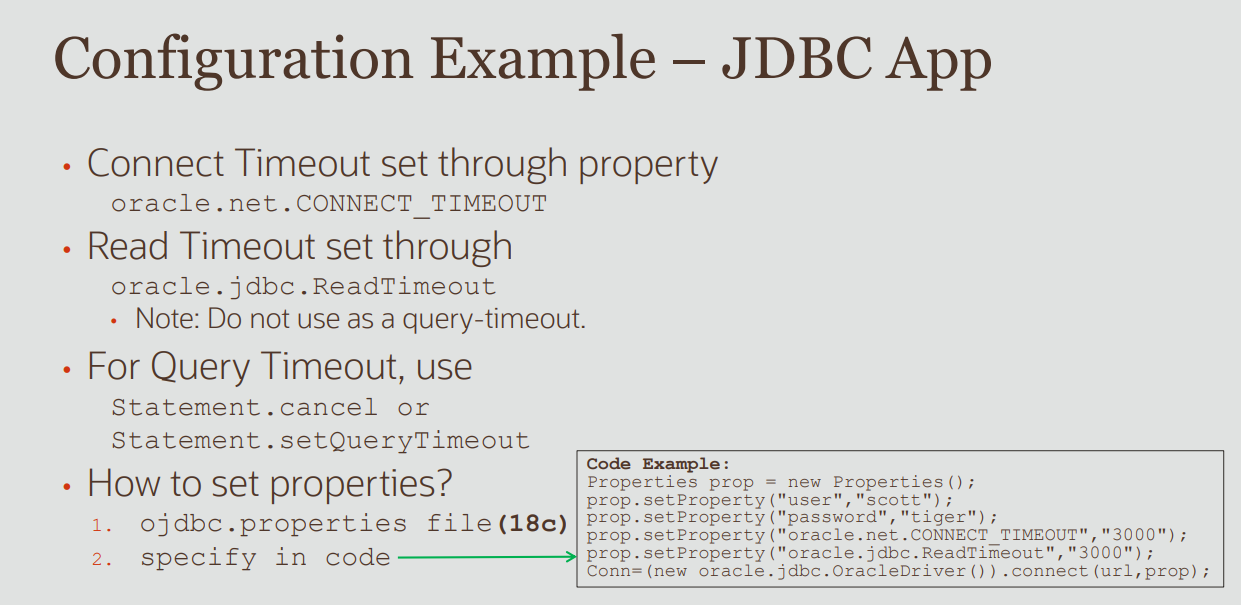 properties.put("Oracle.jdbc.ReadTimeout", 0);