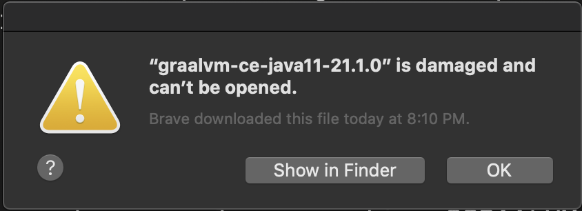 Downloads % sudo xattr -r -d com.apple.quarantine ./graalvm-ce-java11-21.1.0/*https://stackoverflow.com/questions/67904532