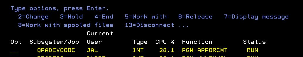 请看我在WRKACTJOB中的工作--占用大量CPU