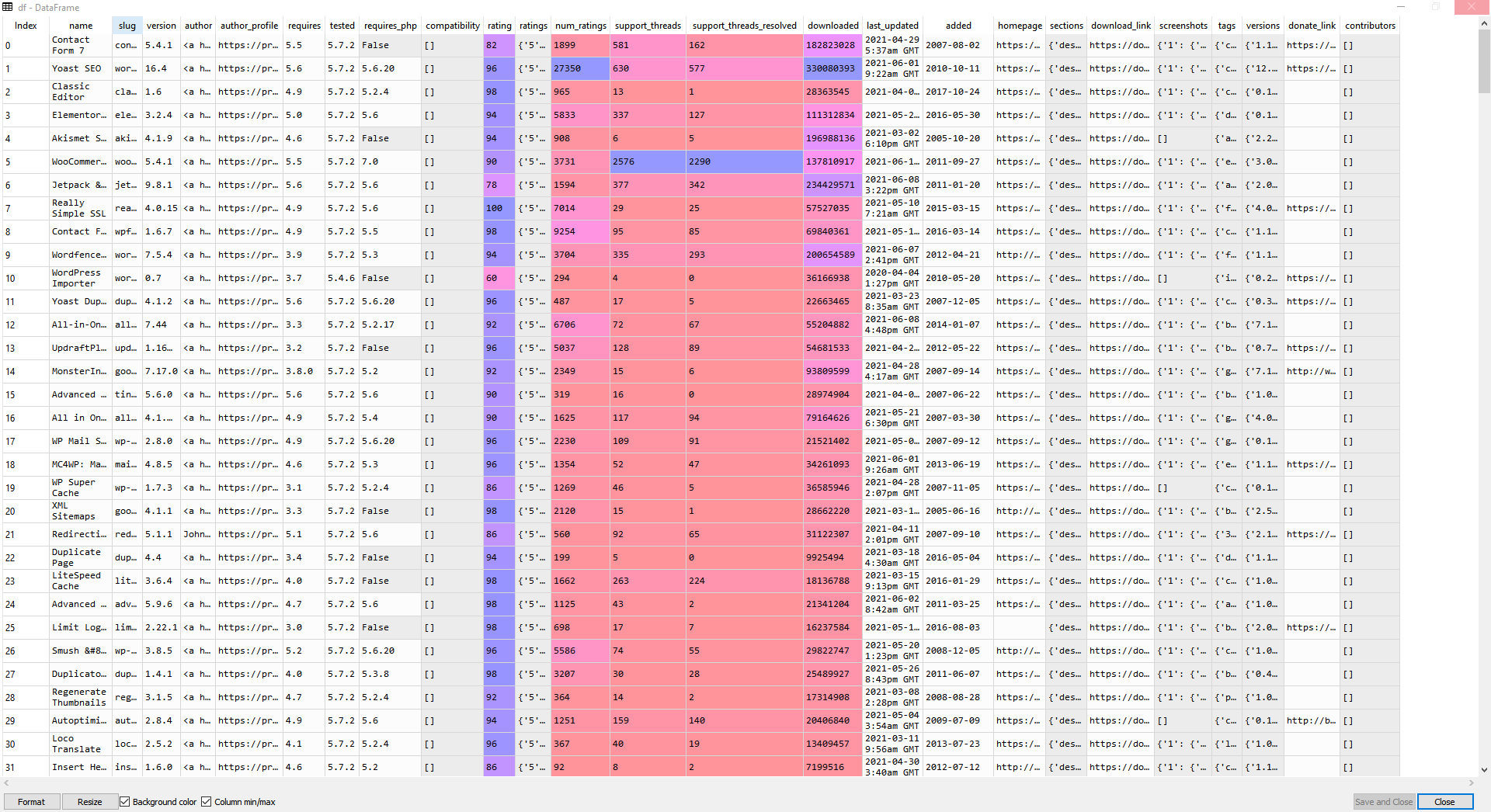 df.to_csv("all_plugins.csv", index=False),这里是一个示例,向您展示列: