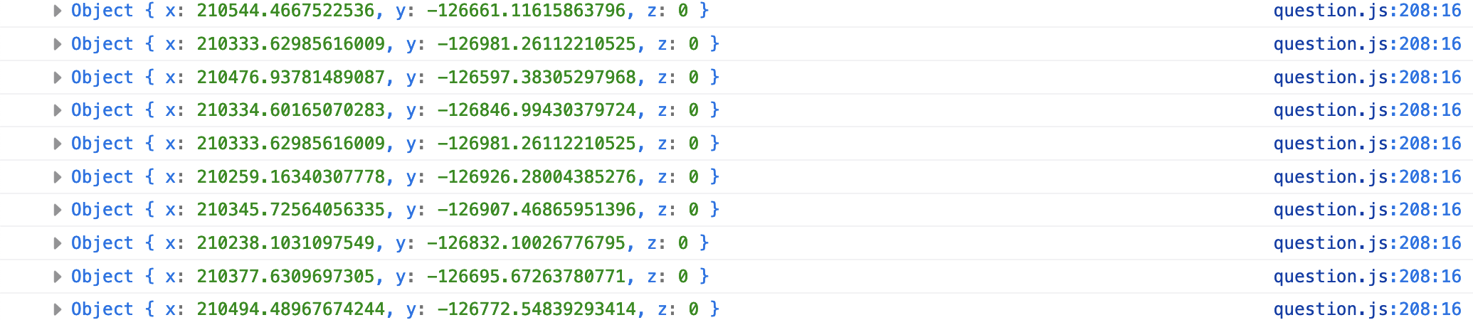 在尝试使用该方法放置three.js对象时,我意识到方法返回的Vector3非常大,而不是在地图上。