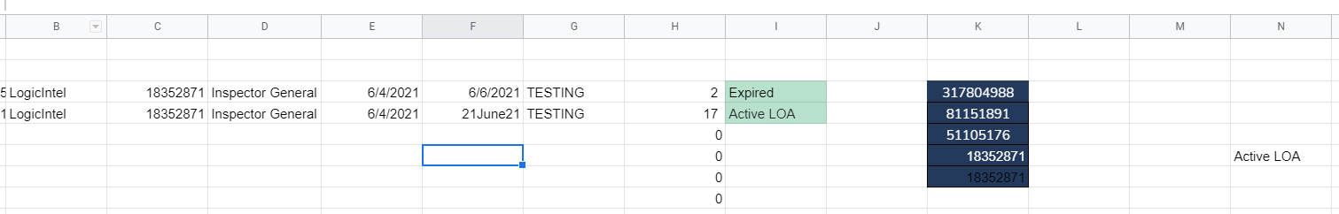 =IF($F3:$F<TODAY(),"Expired","Active LOA")您也可以尝试arrayformula,只需在F3上输入公式