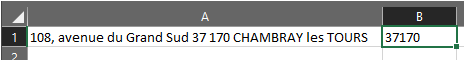 a0 = Cells(1, 1) 'Get the text, in this case "108, avenue du Grand Sud 37 170 CHAMBRAY les TOURS"