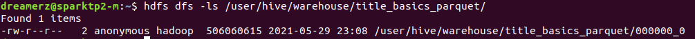 我正确地填充了表,所有数据都在那里,例如,我现在试图访问的表是图像上的下一个表,正如您可以看到的那样,拼花文件就在那里(存储为拼花)。Sparktp2-m是dataproc cluster的主人。