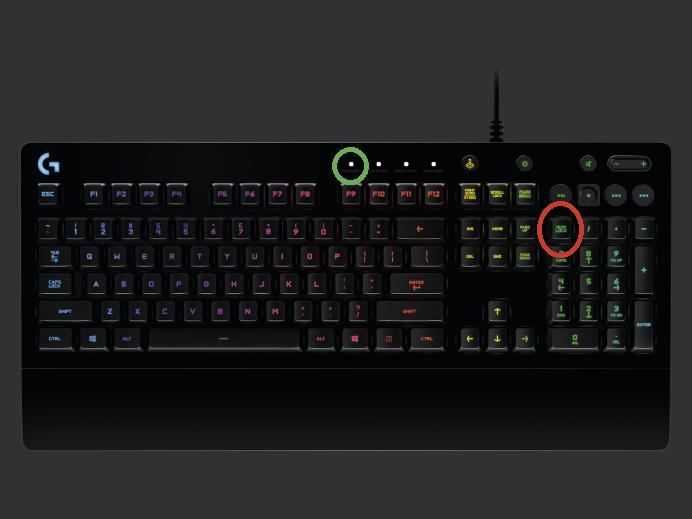 若要打开NUM锁,请按红色圆圈中的键。当NUM锁打开时,绿色圆圈中的LED就会打开。