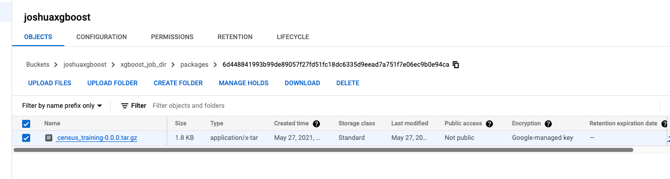 但是,在桶中,我看到的唯一文件是tar,如下所示。