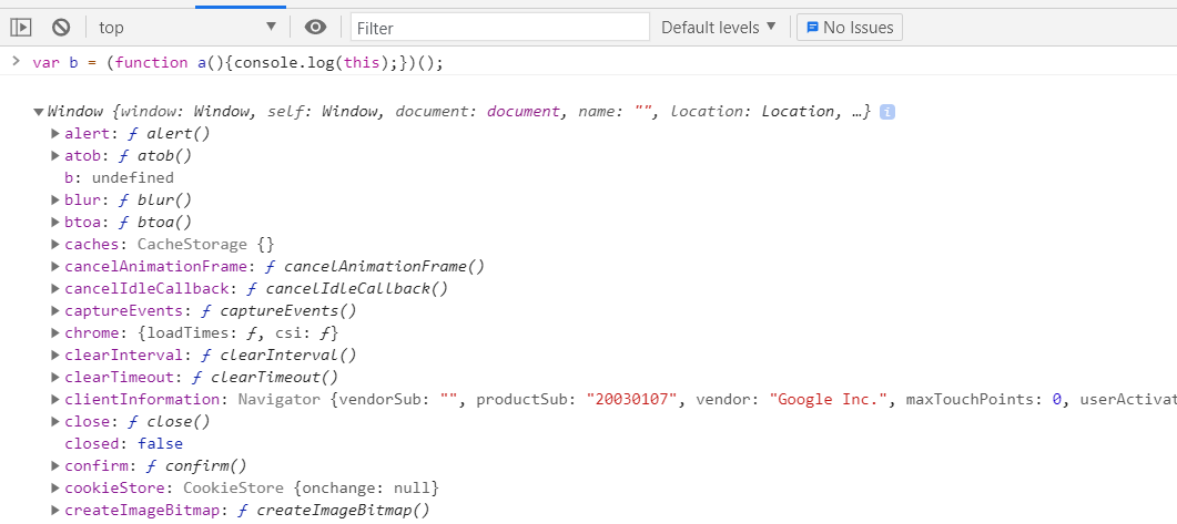 一位朋友回答说,上面的代码是有效的,而且a具有本地范围.现在,我尝试了各种代码,但是a总是返回全局范围。如果他说a has local-scope是真的,那么如何找到本地作用域,因为this keyword应该并且总是返回本地作用域或指向某个对象。