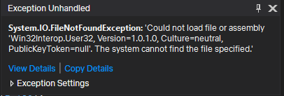 或者,您可以使用手动导入DLL使用[DllImport("Win32Interop.User32")。