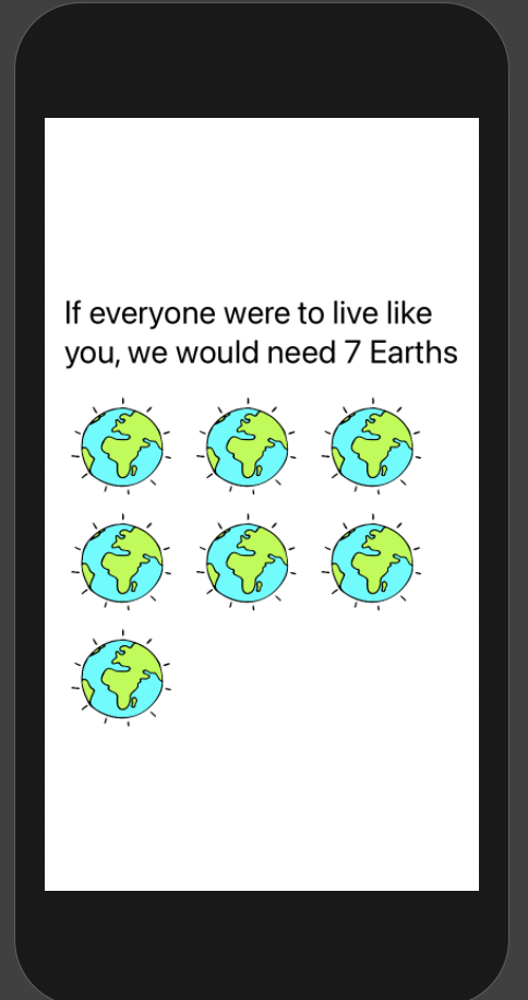 Text("If everyone were to live like you, we would need \(numEarths) Earths").font(.title)