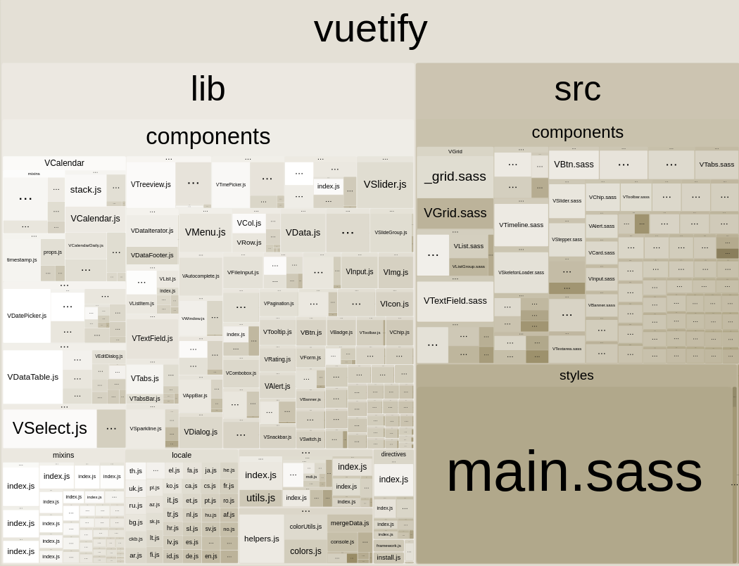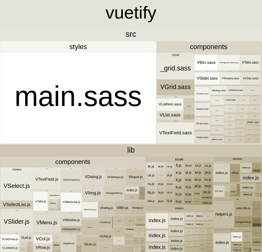 vuetify/lib导出了与命名导出相同的Vuetify类,但也导出了所有组件、指令和预定义颜色,从而在开发中产生了更大的包。正如你在你自己的结果中所看到的那样,由于树木砍伐,生产并不重要。但是,如果您正在自定义您的安装,那么从vuetify/lib为Vuetify和所有其他相关组件进行一次导入要比为颜色、组件和指令拥有单独的导入和路径更容易。