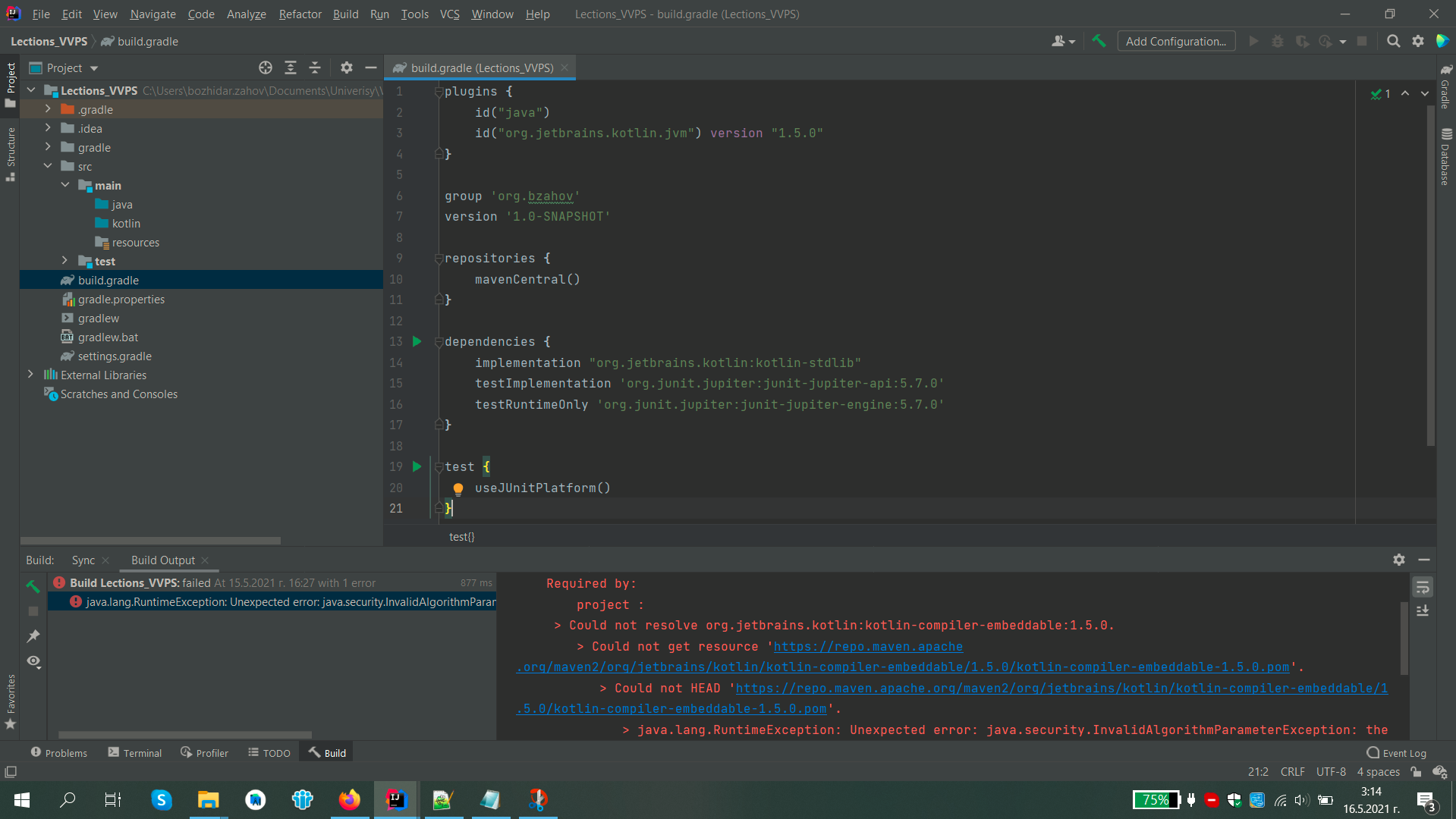 project : > org.jetbrains.kotlin.jvm:org.jetbrains.kotlin.jvm.gradle.plugin:1.5.0 > org.jetbrains.kotlin:kotlin-gradle-plugin:1.5.0 > org.jetbrains.kotlin:kotlin-compiler-runner:1.5.0 > org.jetbrains.kotlin:kotlin-daemon-client:1.5.0