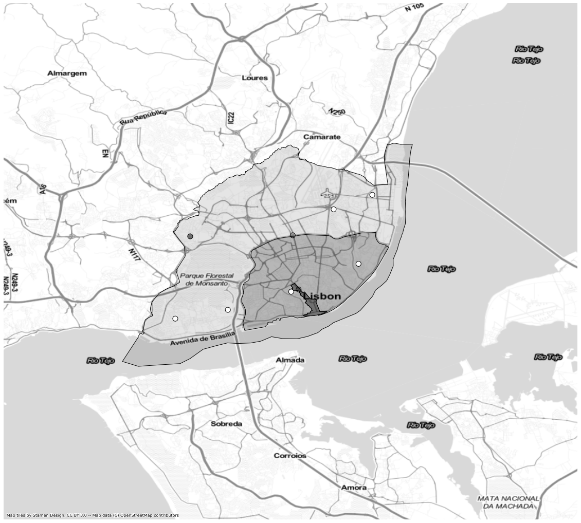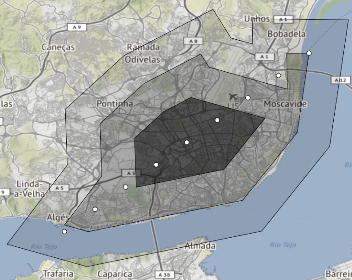 lisbon = "POLYGON ((-9.2298356 38.69532759999999, -9.2159024 38.6913994, -9.1252283 38.70985619999998, -9.0932228 38.74978019999999, -9.0863328 38.79622539999999, -9.0993972 38.79637019999999, -9.0991256 38.7752176, -9.1450919 38.788146499999996, -9.1498877 38.7958538, -9.1831151 38.7785452, -9.2090617 38.7549077, -9.2079549 38.7241641, -9.2298356 38.69532759999999))"
