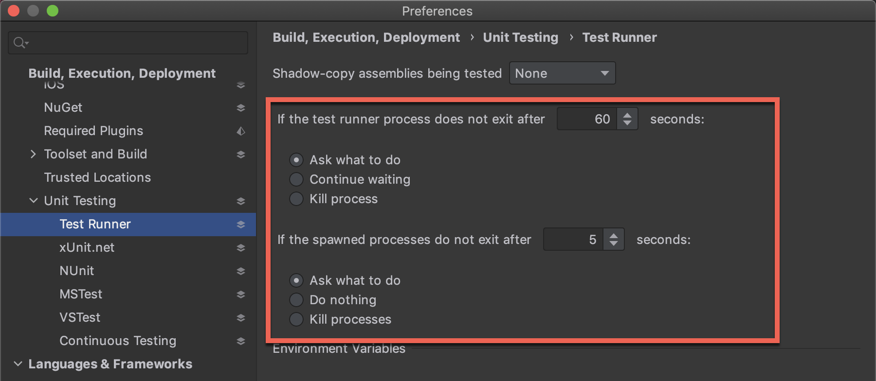 Rider/ReSharper中有一种机制,它检测测试运行程序或dotnet进程由于不同的原因无限期地运行。在这种情况下,它将显示以下对话框: