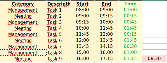 Task 1; Task 3; Tastk 5; Task 7; Task 8。我如何才能做到这两个选项,有两个矩阵(管理和会议)和两个专栏(时代和描述)?