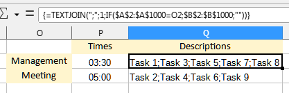 {=TEXTJOIN(";";1;IF($A$2:$A$1000=O2;$B$2:$B$1000;""))}