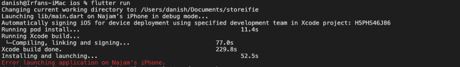 Launching lib/main.dart on Najam’s iPhone in debug mode...