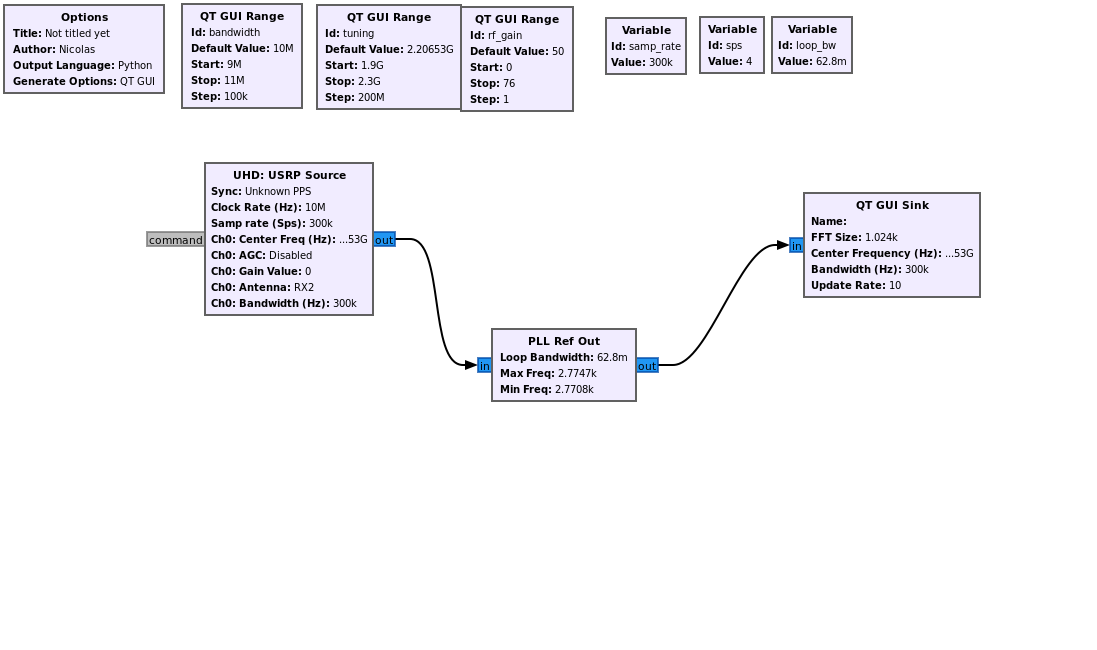 我正在努力为GNU无线电上的QPSK调制信号建立一个RX信道。我在我的项目的第一阶段,所以我在USRP N210中发送的信号是一个以2.206 GHz为中心的载波信号。