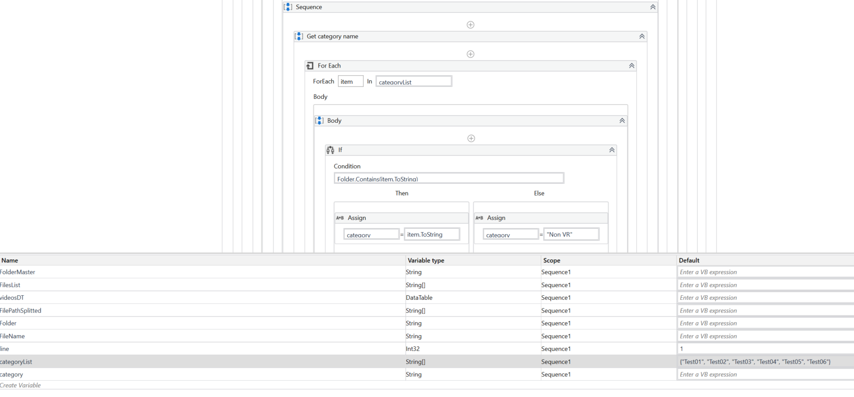 我‘使用一个“做每一个”循环,为我的"IF“条件提供一个字符串类型的”项“。