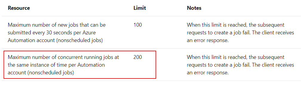 是的,如上所述,Azure沙箱每个自动化帐户同时运行的200是有限制的。