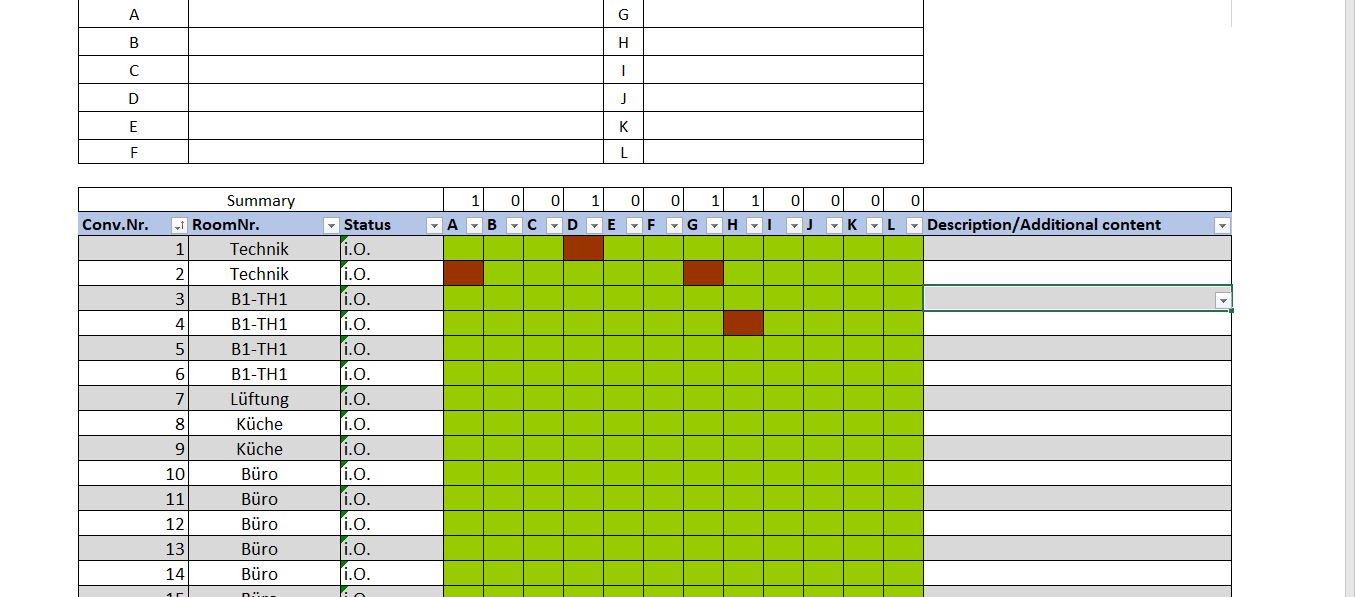 目前,我正试图开发一个电子表格,帮助我记录我的大楼内出现故障的对角器/窗口(我在设施管理-业务部门工作)。因为每层楼都有将近140个Windows和80个对角器,而且我们没有标准的方法来记录问题/缺陷,所以我想在Excel 2016中创建一个Excel表格。